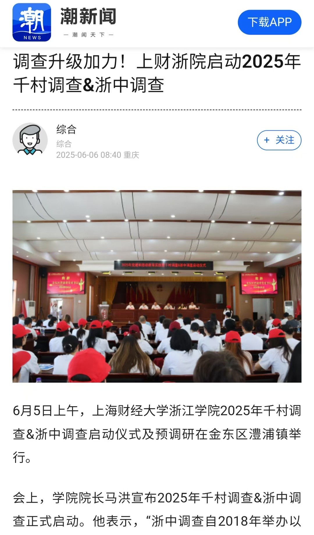 潮新闻|调查升级加力!上财浙院启动2025年千村调查&浙中调查